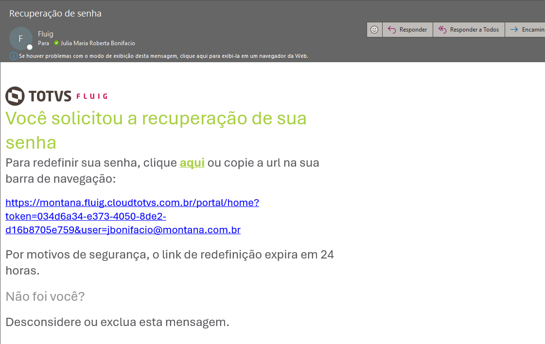 Após clicar no link, será aberto um site do Fluig onde você poderá inserir sua nova senha.