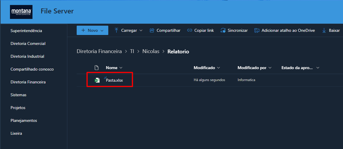 1. É obrigatório que a planilha a ser recuperada esteja na rede para que possamos abri-la online e usar o recurso de restauração de versões anteriores.