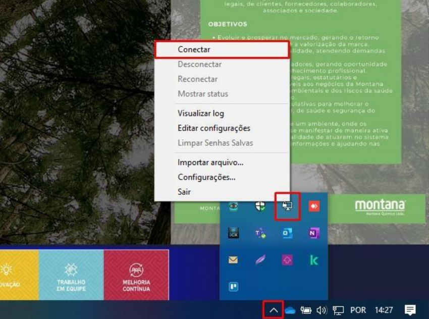 Concluído, e para sair da VPN basta clicar com o botão direito e desconectar