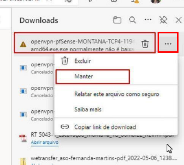 Obs: Se estiver com dificuldades para baixar a VPN, recomenda-se copiar o Link e realizar o download pelo navegador Google Chrome