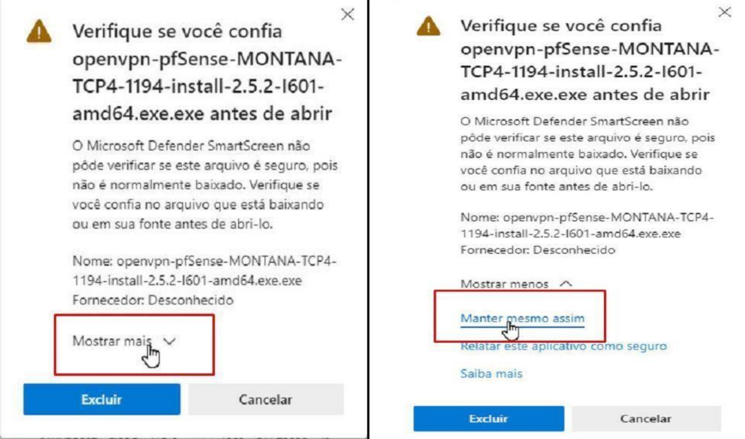 Depois vá em "Mostrar mais" e em seguida "Manter mesmo assim"