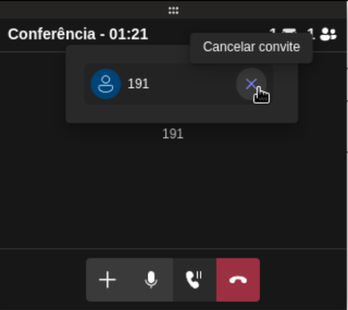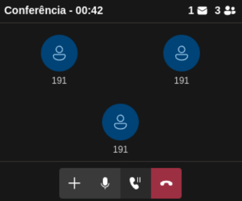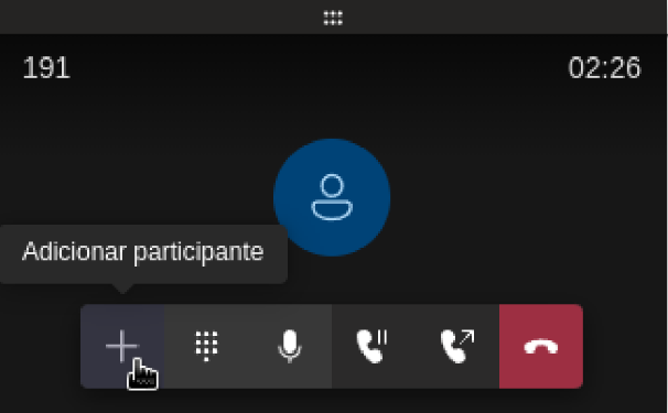 Para adicionar participantes à uma ligação em andamento e torná-la em uma conferência, basta clicar no botão indicado abaixo.