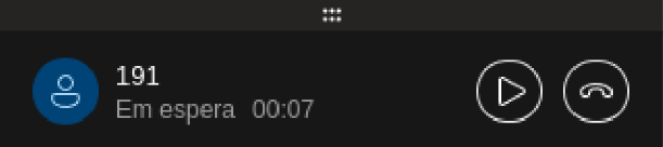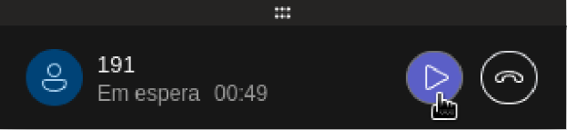 Para retomar uma ligação em espera, é necessário que qualquer outra ligação ativa seja colocada em espera ou finalizada, e então basta clicar no botão indicado abaixo para a chamada voltar a seu estado ativo.