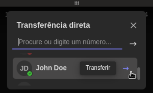 Independentemente do tipo de transferência escolhida, é aberta uma tela contendo a lista dos usuários atualmente ativos no sistema. Aqueles com um ícone vermelho abaixo de suas fotos e que não podem ser selecionados estão com o Não perturbe ativado. Para transferir para algum dos demais ativos, basta clicar no botão indicado.
