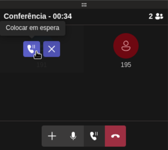 Você pode colocar uma chamada em espera clicando no botão de Colocar em espera.
