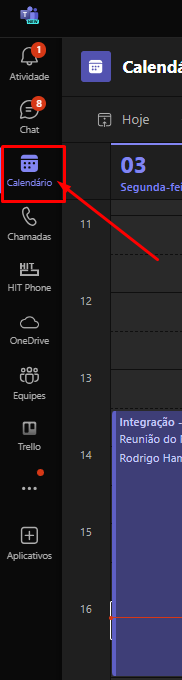 2. Navegar até a Seção de Reuniões: No menu lateral esquerdo, clique na opção "Calendário". Isso abrirá a sua agenda e mostrará os seus compromissos e reuniões agendadas.