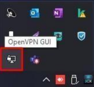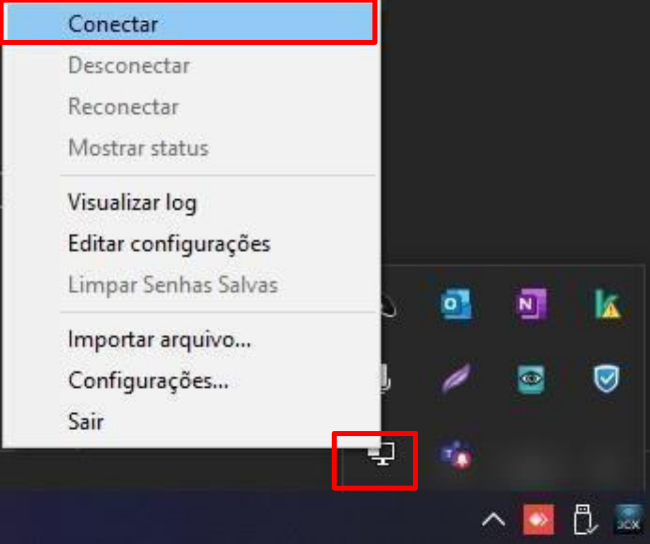 Após alguns instantes, o ícone do OpenVPN será exibido em sua "Barra de tarefas" que está situado no canto inferior direito da tela no ícone de seta: