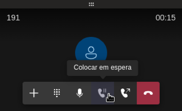 Você pode colocar uma chamada em espera clicando no botão de Colocar em espera.