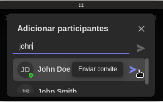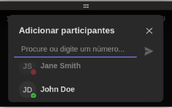 Na barra de busca, além de ser possível filtrar pelos usuários ativos no sistema, também é possível digitar um telefone qualquer e convidá-lo para uma conferência, como é mostrado abaixo.