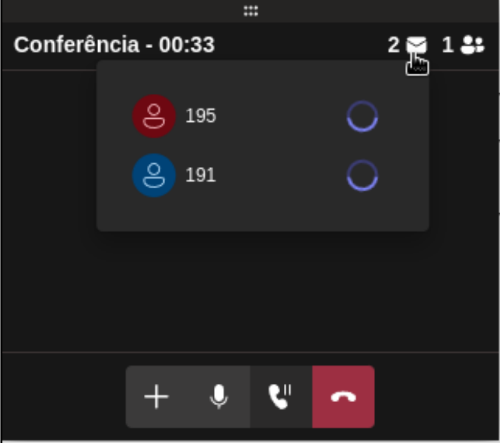 Na barra superior de uma conferência, é possível verificar a quantidade atual de participantes ativos na conferência e a quantidade de convites em andamento.