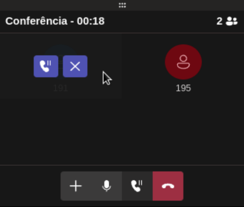Para adicionar participantes à uma ligação em andamento e torná-la em uma conferência, basta clicar no botão indicado abaixo.